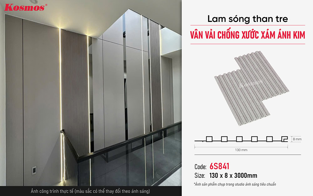 6S6 841-wave bamboo charcoal wall panel with metallic gray fabric pattern, scratch-resistant, has a lifespan of 10 - 15 years, meeting the needs of fast, effective and economical interior decoration. Please contact us at 0932.067.388 If you need further advice on the product.