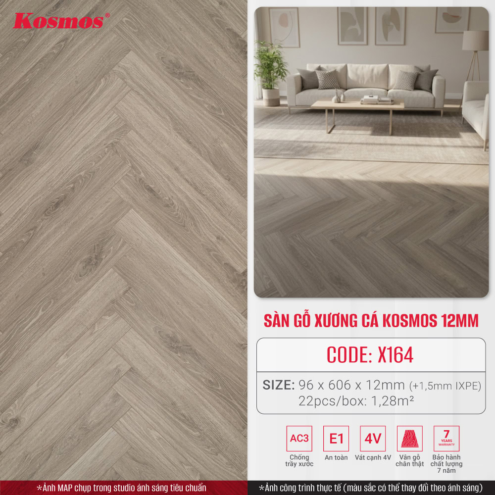 X16-4 herringbone Laminate flooring (IXPE) is the perfect choice for those who want to own a luxurious, classy and durable space. Please contact Kosmos immediately for detailed advice and quotes.