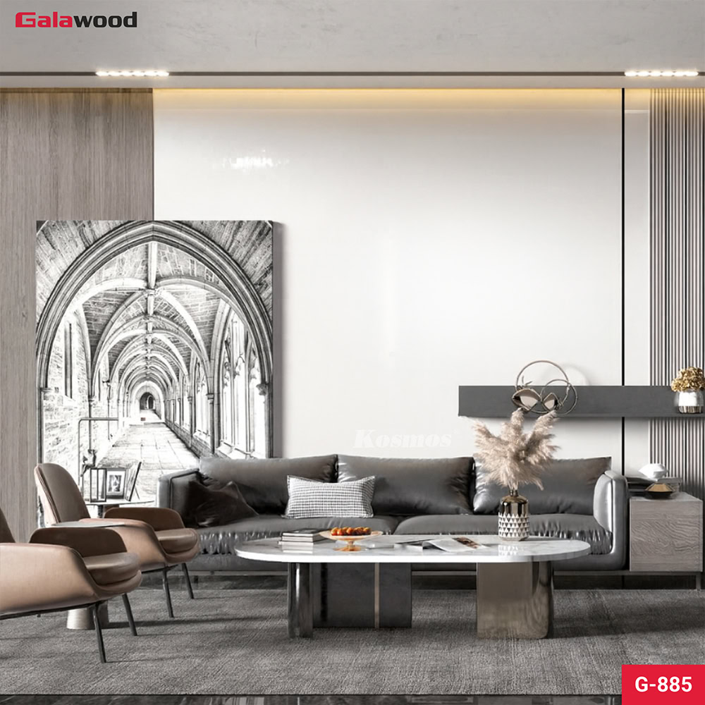 - Wall cladding, ceiling claddingWith its elegant white color and excellent moisture and scratch resistance, the G-885 bamboo charcoal panel is an ideal choice for decorating walls and ceilings in hallways, office buildings, shopping malls, etc. The product is suitable for many interior design styles such as modern, classic, neoclassical, and more.